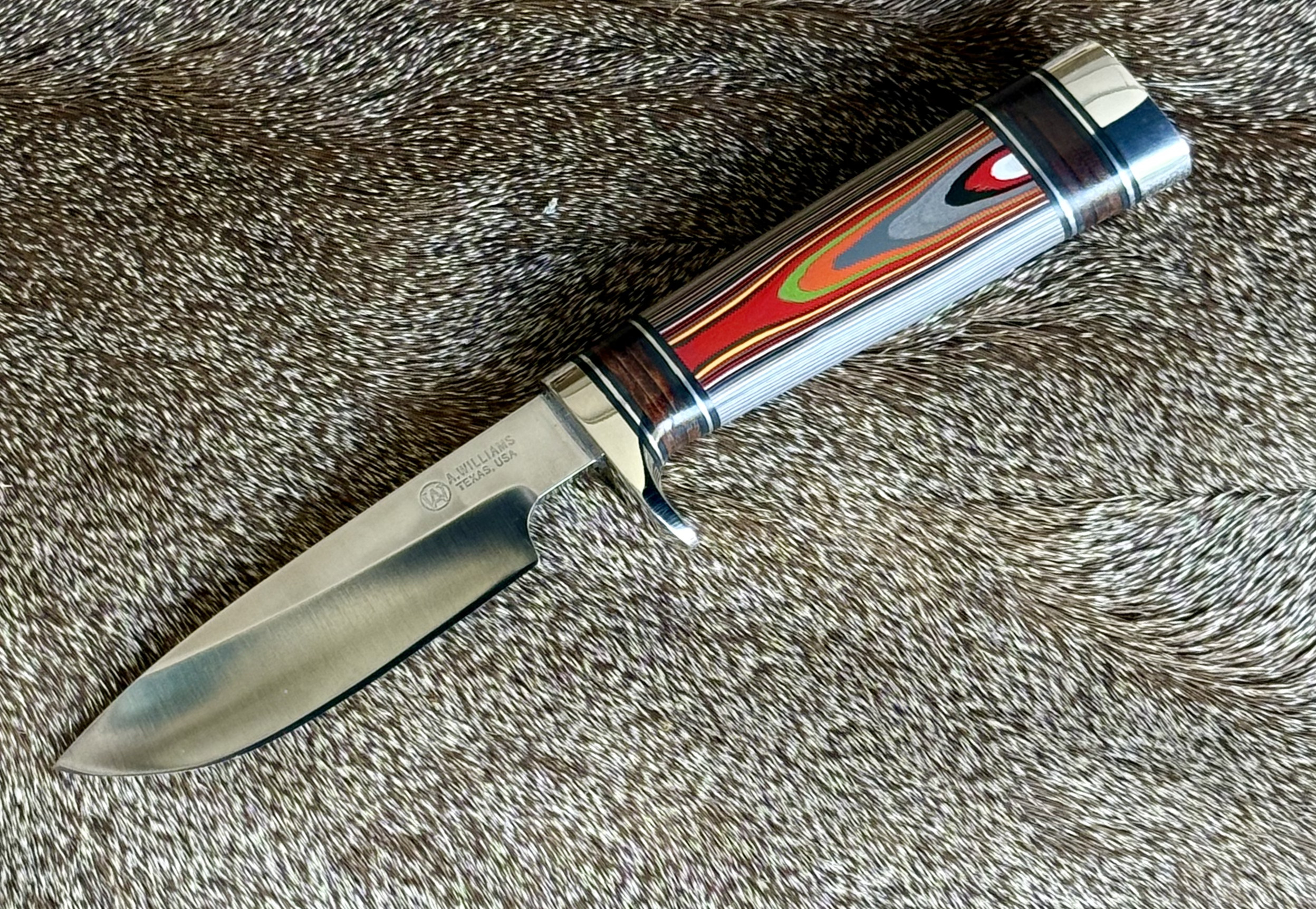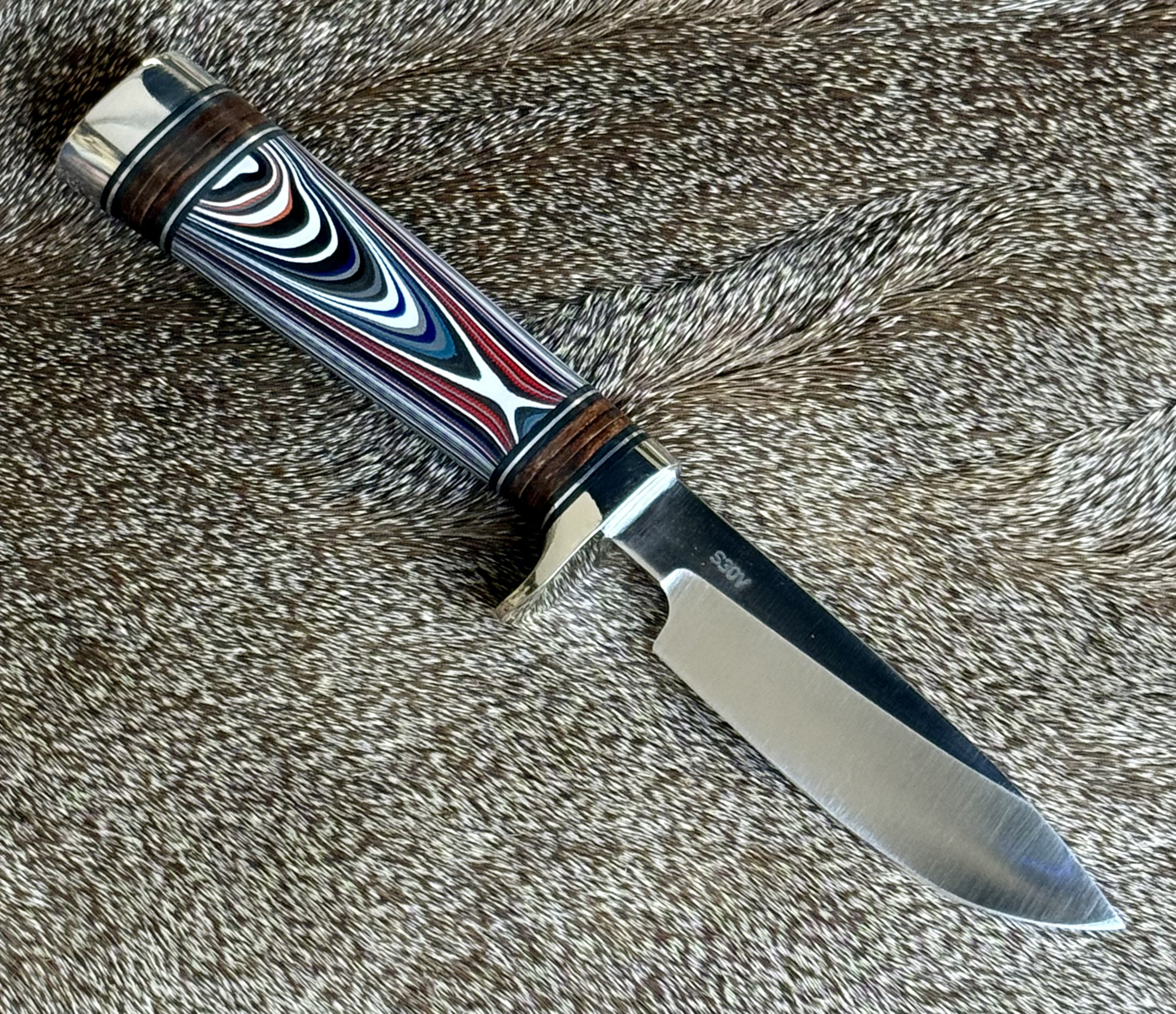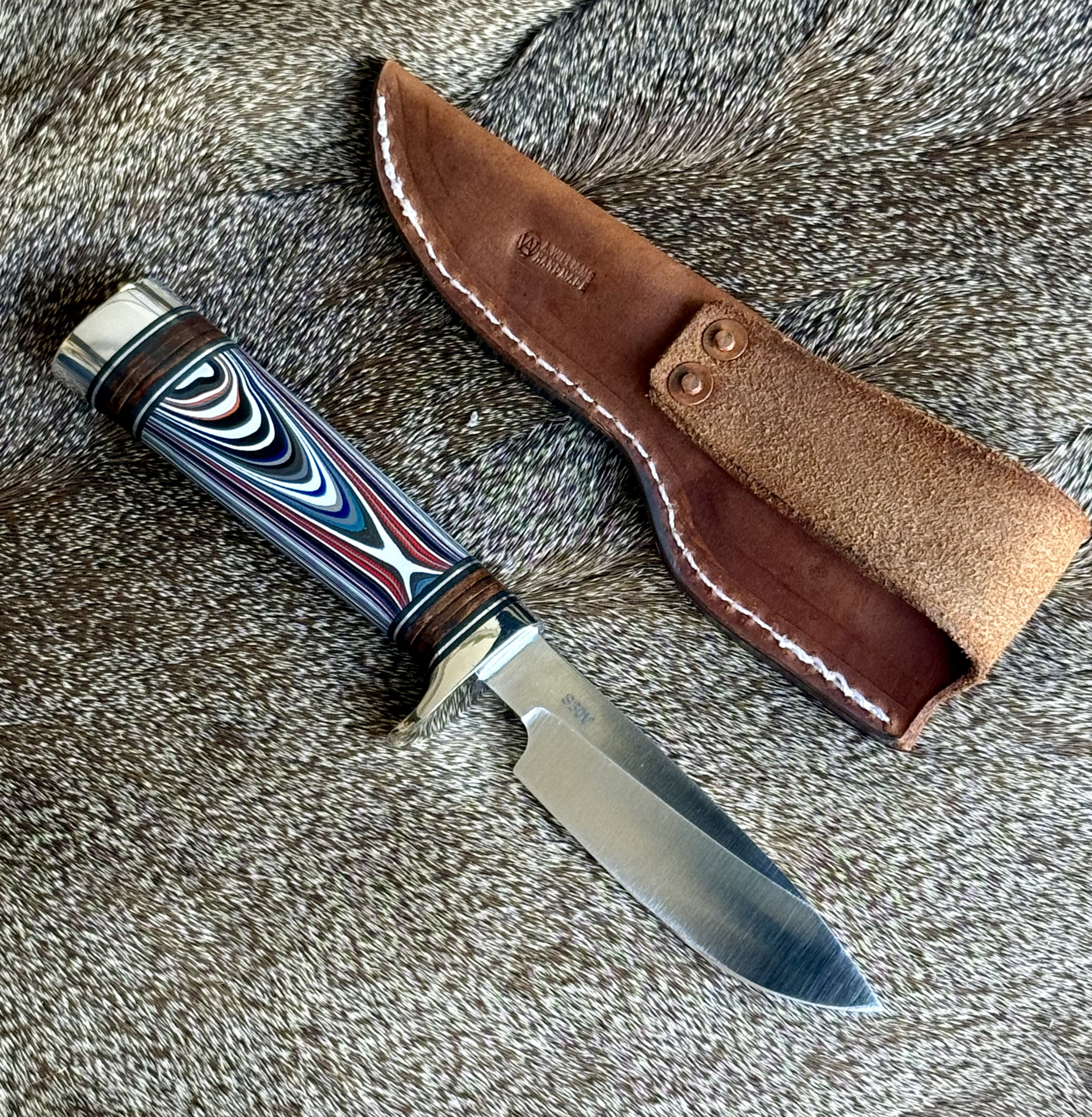 Handle: Fordite (2021 Jeep automotive paint) with stacked leather spacers