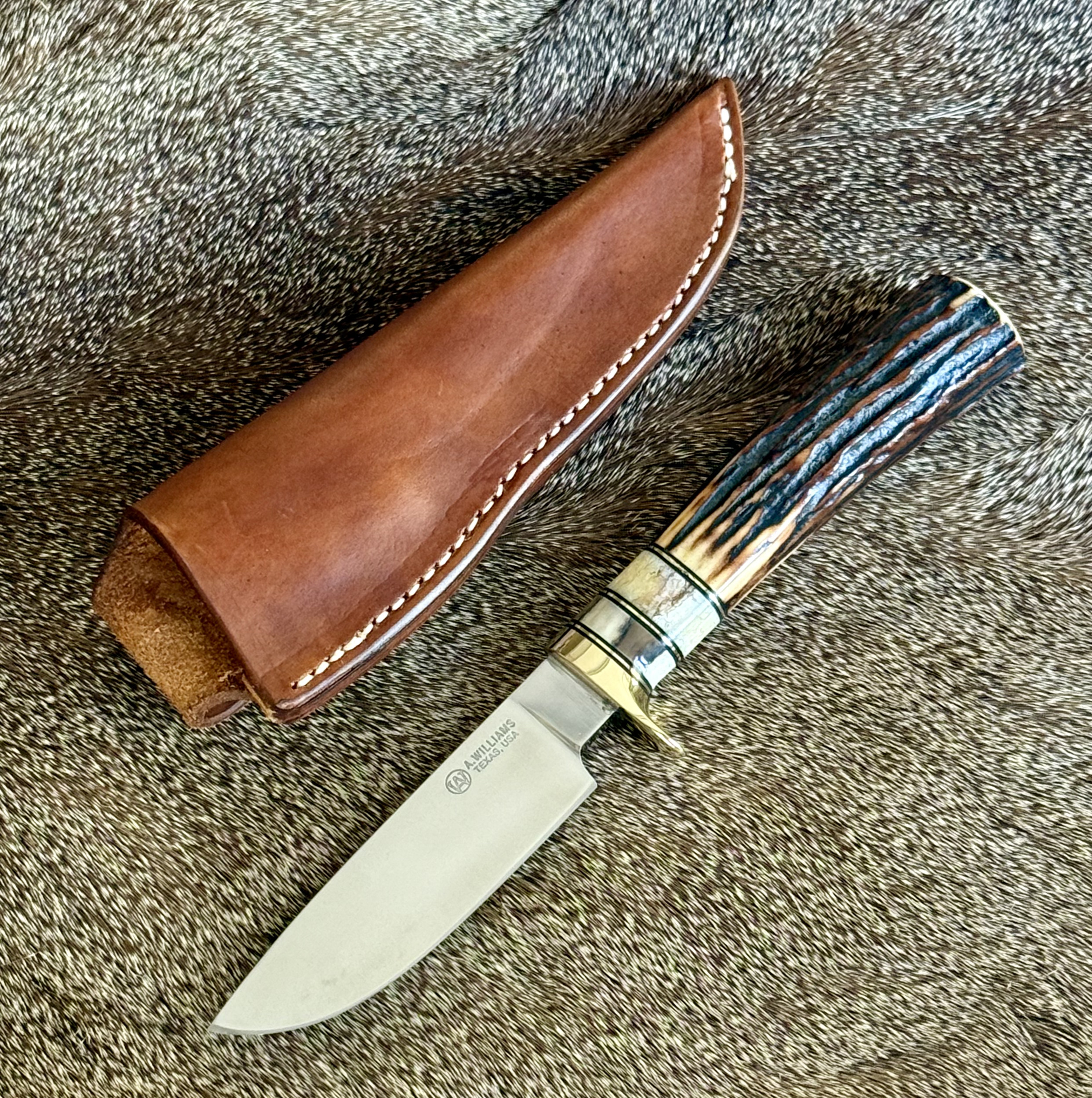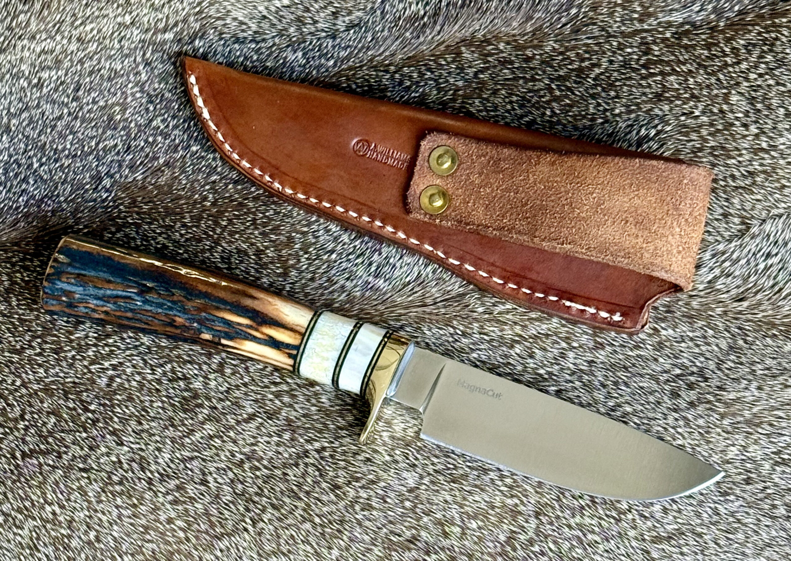 • Handle: Indian sambar stag with fossilied walrus ivory spacers