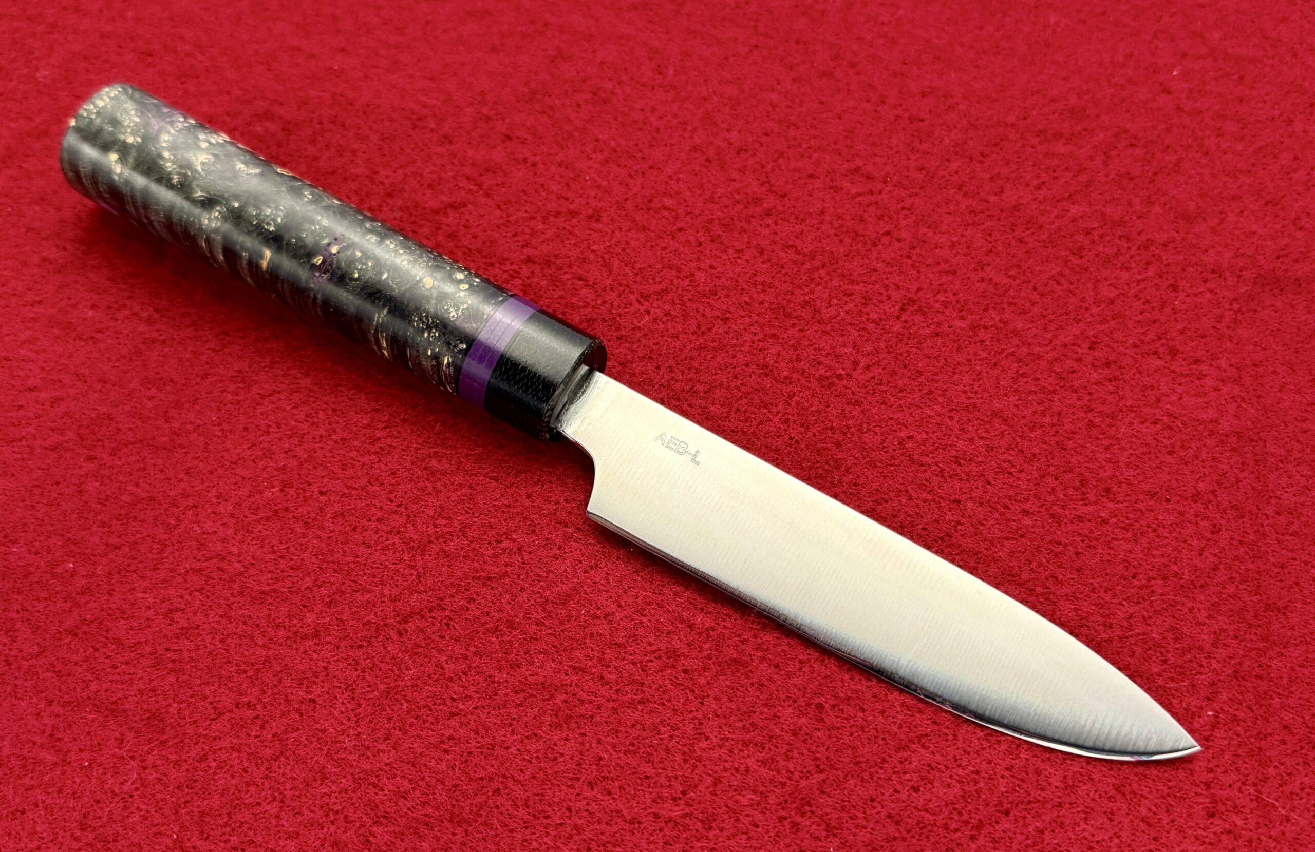 Handle: Purple dyed and stabilized burl wood